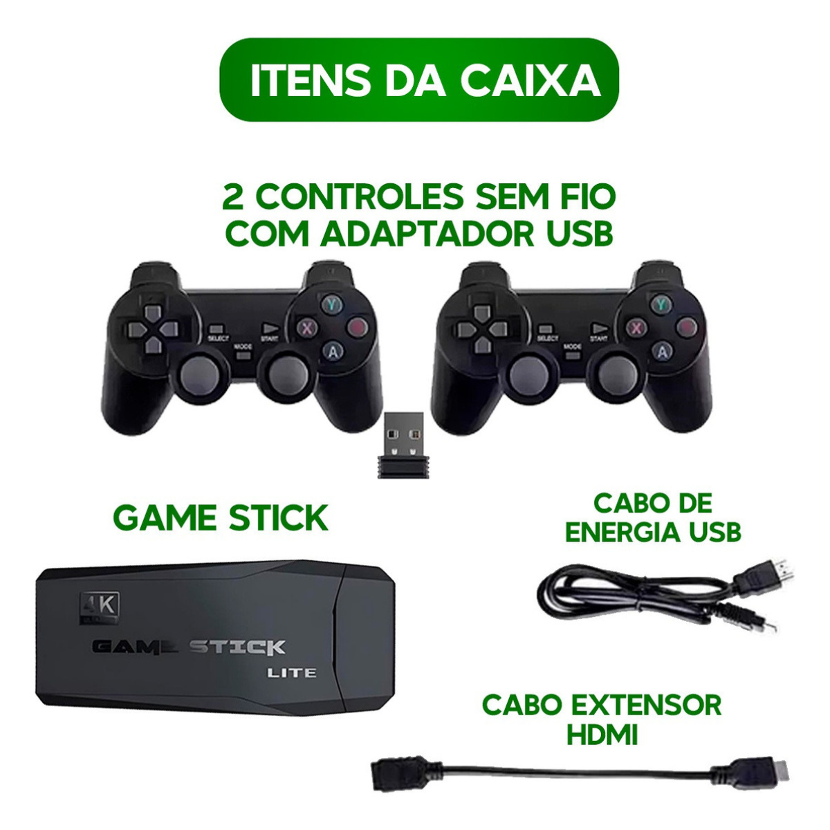 O Videogame Retro GameStick 4K traz milhares de jogos clássicos direto para sua sala, com imagem HD, controles sem fio e nostalgia garantida.